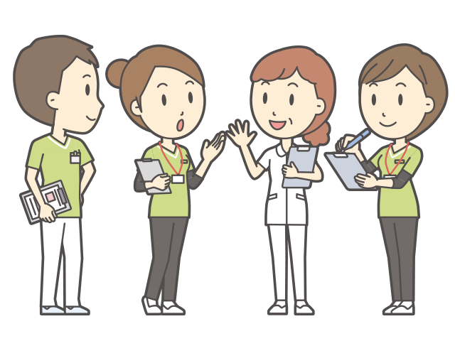 医師はもちろん、担当のケアマネジャーさまや相談員さま、別居のご家族や関わる関係者さまへの報告や連絡、相談などを電話やFAXなどで行い、ご利用者さまをチームで支えられるよう、連携を大事にします。緊急時対応後は、素早く連絡を行います。